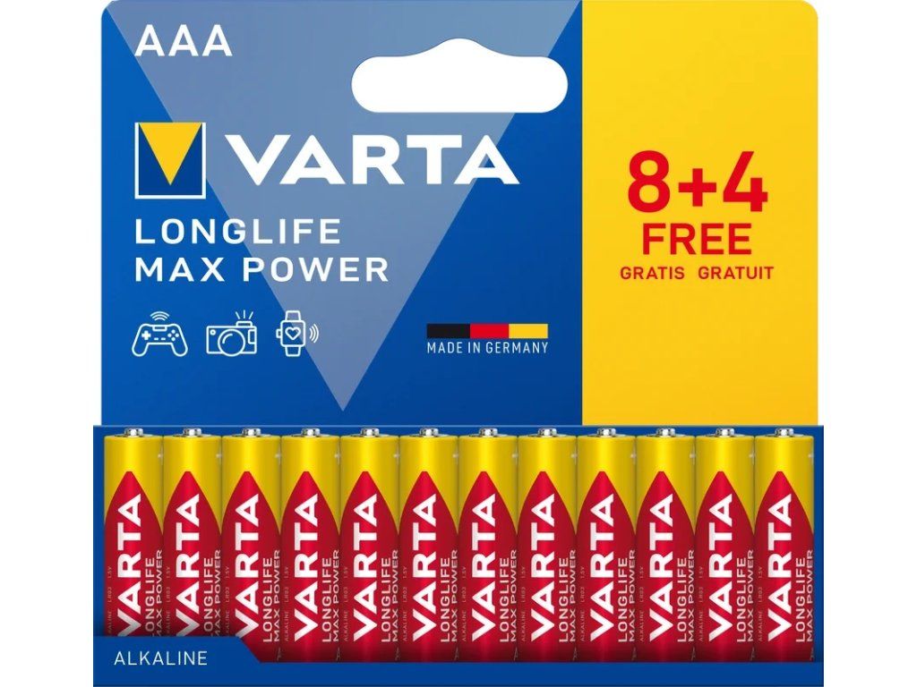 Nikdy nevíte, kdy se vám baterie vybije – ať už v ovladači, hodinách nebo dětské hračce. S balením 12 baterií Varta Longlife Max Power AA máte jistotu, že vás nic nepřekvapí.