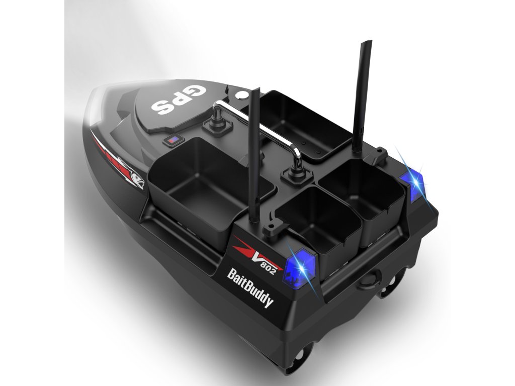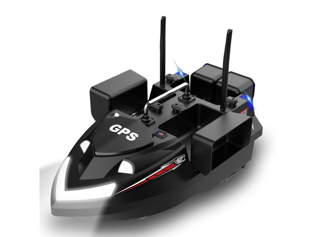 Loďka se čtyřmi komorami nově přichází v černé barvě. Hlavní předností této zavážecí loďky s GPS je možné nastavení 4 rybářských revírů, od teď není nutné při každé změně vodní plochy mazat uložené zakrmovací body. Stačí jen přepnout na jinou vodní plochu! Na každém revírůje možné nastavit 40 zavážecích bodů, celkově lze zavážecí loď poslat až do 160 jednotlivých míst! Samozřejmostí jsou silné motory, jednoduché ovládání a český návod.