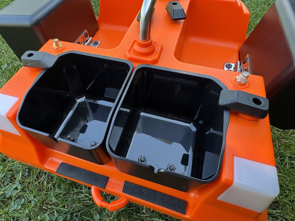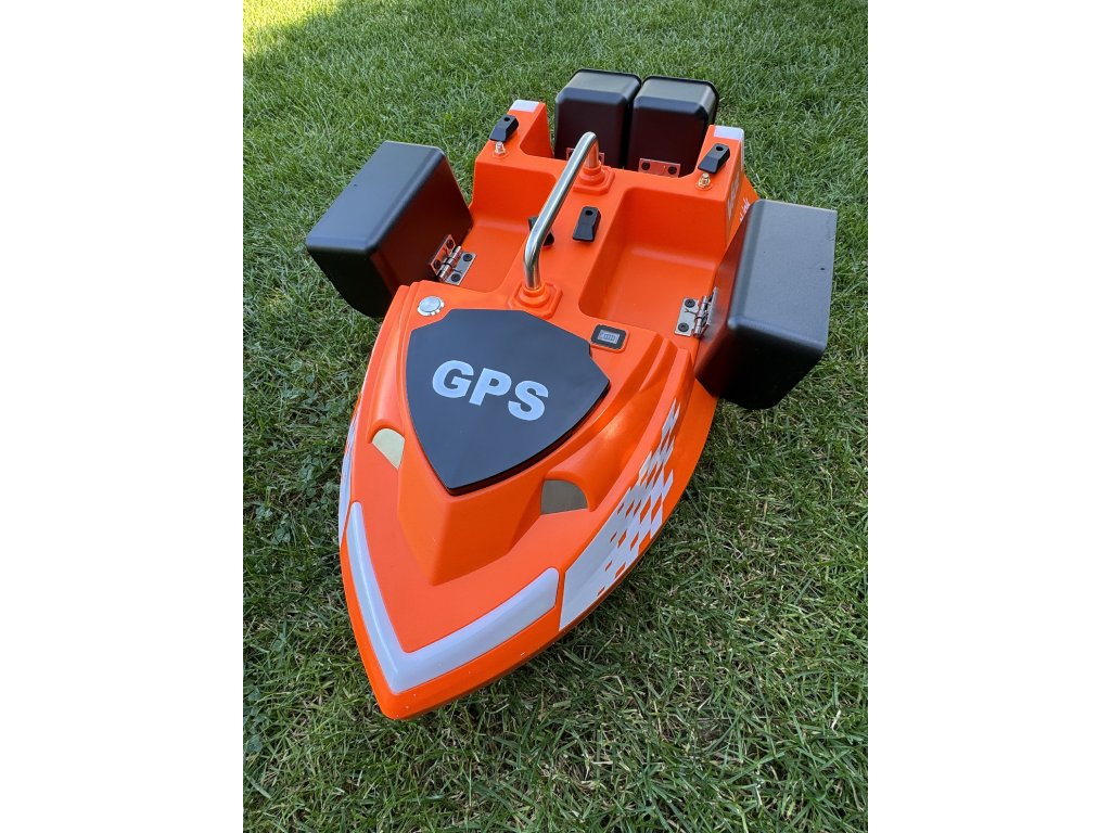 Loďka se čtyřmi komorami nově přichází v oranžové barvě. Hlavní předností této zavážecí loďky s GPS je možné nastavení 4 rybářských revírů, od teď není nutné při každé změně vodní plochy mazat uložené zakrmovací body. Stačí jen přepnout na jinou vodní plochu! Na každém revírůje možné nastavit 40 zavážecích bodů, celkově lze zavážecí loď poslat až do 160 jednotlivých míst! Samozřejmostí jsou silné motory, jednoduché ovládání a český návod.