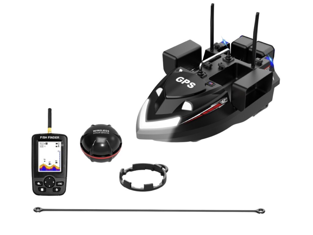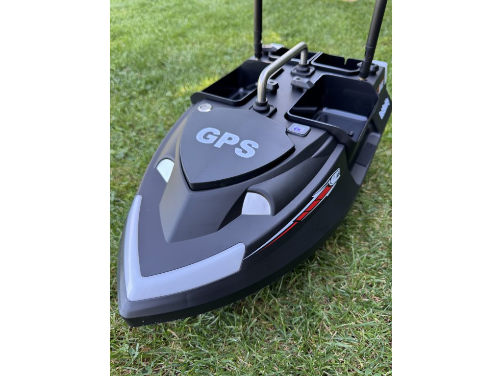 Loďka se čtyřmi komorami nově přichází v černé barvě. Hlavní předností této zavážecí loďky s GPS je možné nastavení 4 rybářských revírů, od teď není nutné při každé změně vodní plochy mazat uložené zakrmovací body. Stačí jen přepnout na jinou vodní plochu! Na každém revírůje možné nastavit 40 zavážecích bodů, celkově lze zavážecí loď poslat až do 160 jednotlivých míst! Tato modelová novinka je vybavena GPS i sonarem, který lze jednoduše připnout za lodičku. Samozřejmostí jsou silné motory, jednoduché ovládání a český návod.